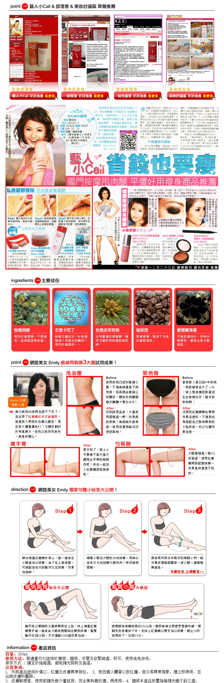 多種天然精華,助您輕鬆塑造完美曲線,包括: