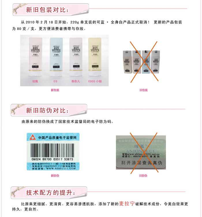 Name : 2010年最新二代可蓝全身白增白防晒美体液250G