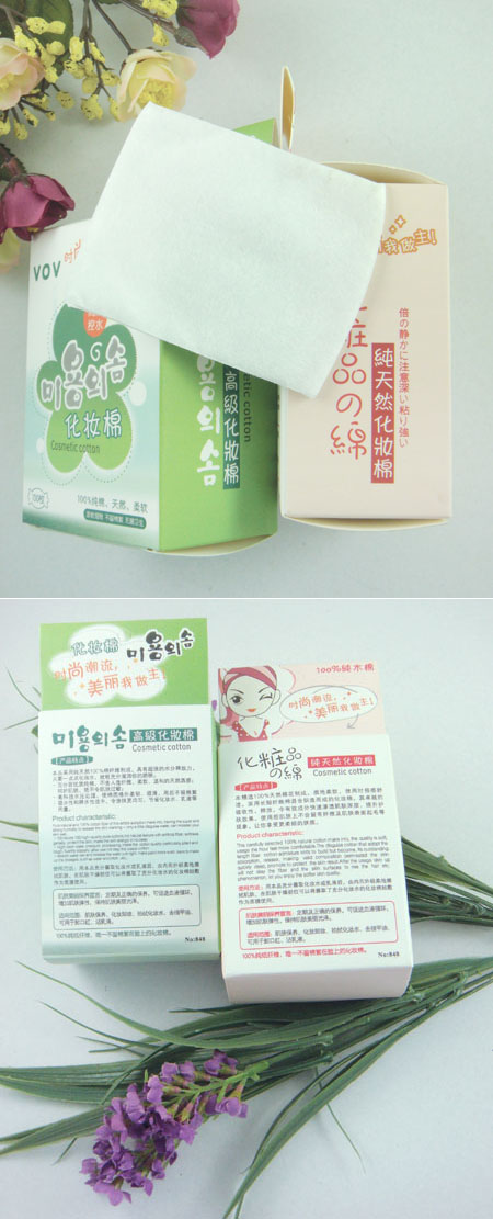 本品手感柔软细腻100%木棉,轻拭脸部触感舒服,不易产生棉絮,使你的脸部干净。 经过紫外线消毒,品质清洁,卫生可靠,适合上妆,卸装时使用,拭除面霜,唇油,指甲油等残油物,同时也是爽肤水的最佳搭档。 一次使用一至两片,属于经济型用品,立体纸盒包装,使用更方便。 纯棉制造,质感柔软,方便卫生,特别适用于清洁面部化妆或配以其他清洁用品,洁净肌肤! 店主亲自试过,吸水性好、不起毛、韧性还不错!不过小东西希望大家都别太挑,谢谢! 100片/包 小窍门: 对于细心对待pp脸蛋的mm,将洗面产品挤到棉片上,用食指和无名指夹住棉片在脸部慢慢揉。这种方法较手掌直接提拉面部更清柔,不容易产生敏感以及久而久 之提拉面部带来的松弛和皱纹,棉片也更容易把污物带走!洗完了再看看棉片已经是黑黑的,手掌洗脸绝对不会有这样洁净、清爽的效果哦!