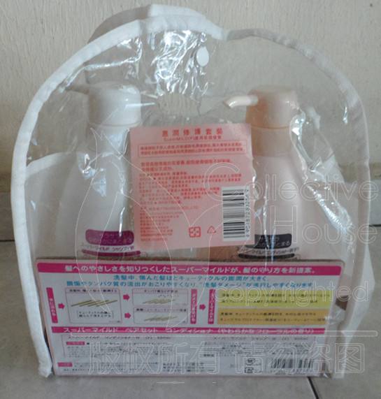 Description : 规格:洗发水600ml+护发素600ml 含丰富的维他命E成分及头皮组织所需的微量元素,为秀发提供所需营养,会使头发十分服贴,发感自然,没有硬湿的感觉。 *它可迅速恢复秀发的自然光泽和柔软度,特别适合于漂染和受损发质。质地非常柔和,而且它的味道也是如此诱人,总让人感觉如水果般的清新。 只需从发根按摩至发尖,不粘不腻,清爽顺服。让您的秀发充满飘逸,百分百从鲜花中提取的香芬,使头发馨香怡然。眸然回首,原来美丽来得那么简单,自然最美。 *SUPER MILD超柔洗发水 蕴含人体关联成份W-AMT配方,是一种对头发及头皮都起滋润作用的中性洗发剂。用后令秀发保持干净柔顺,充满自然光泽。采用能深层洁净低刺激性的AMT 成分,能轻松洗净、并保护头发中的重要成分不流失,保持头发长久富有光泽感。