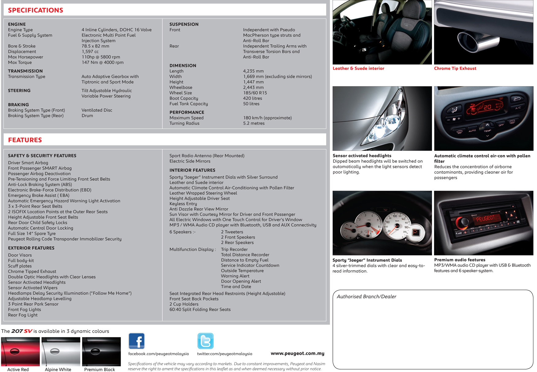 The 207 SV is a new generation of Peugeot that boosts a host of features and benefits aimed at not only the dynamic urban and young drivers but also young families.