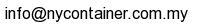 Company Particular| Company : | NY CONTAINER SPECIALIST SDN. BHD. | | Fax : | 6(07)-557 0881 | | Address : | Lot 2788, Batu 8, Jalan Kempas Lama, off Jalan Skudai, 81300 Johor Bahru. | | Email : |  | | Website : | http://nycontainer.com.my |
